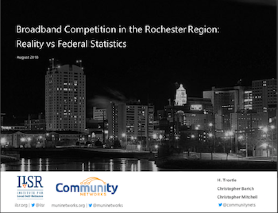 Read more details about the situation in Rochester; download the policy brief Broadband Competition in the Rochester Region: Reality vs Federal Statistics here.
