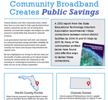 We have already published a fact sheet on the critical role community broadband plays in job development. Now, ILSR presents a collection of how community owned broadband networks save money for local government, schools, and libraries while providing cutting edge services. The Public Savings Fact Sheet is now available.